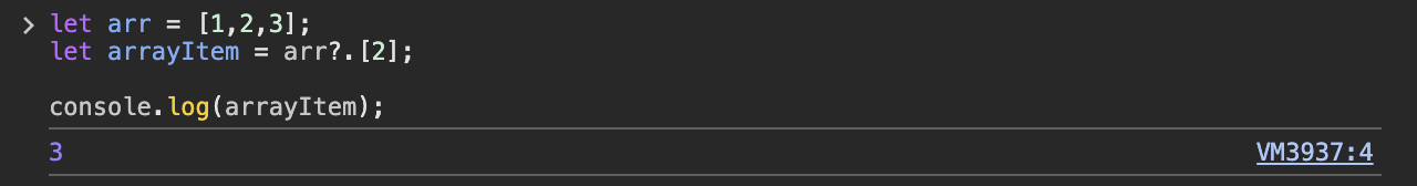 대신, 함수 호출 전에 chaining연산자를 사용하여 안전하게 객체의 요소(Property)나 메서드(Method)를 호출해야합니다. - Optional chaining은 객체 chaining을 위해 만들어진 것이므로, 배열에서 사용할 수 없습니다.