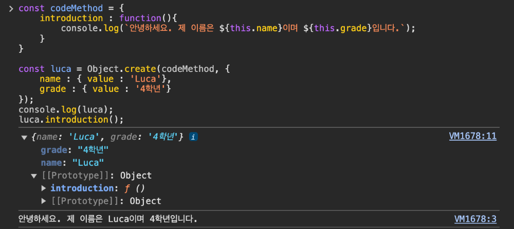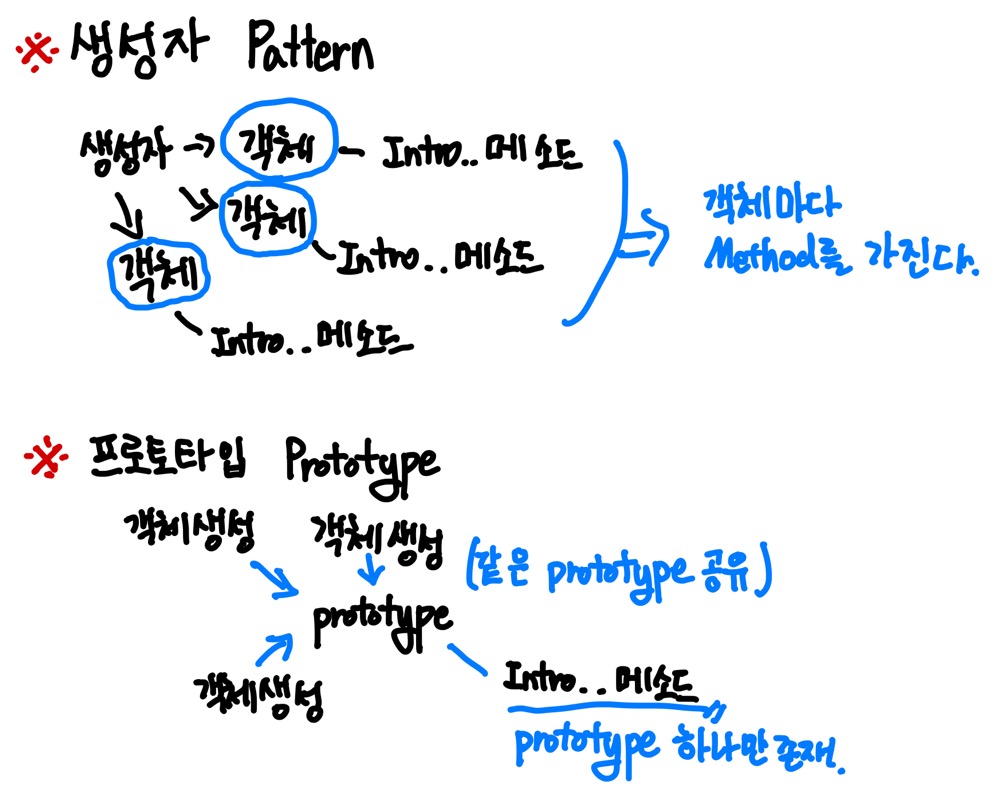 - 객체들을 여러 개 생성하더라도, 같은 프로토타입을 공유하기 때문에, introduction메서드는 프로토타입에 하나만 존재합니다.
