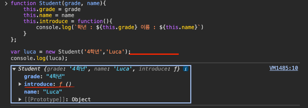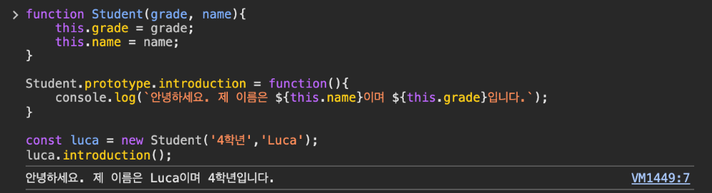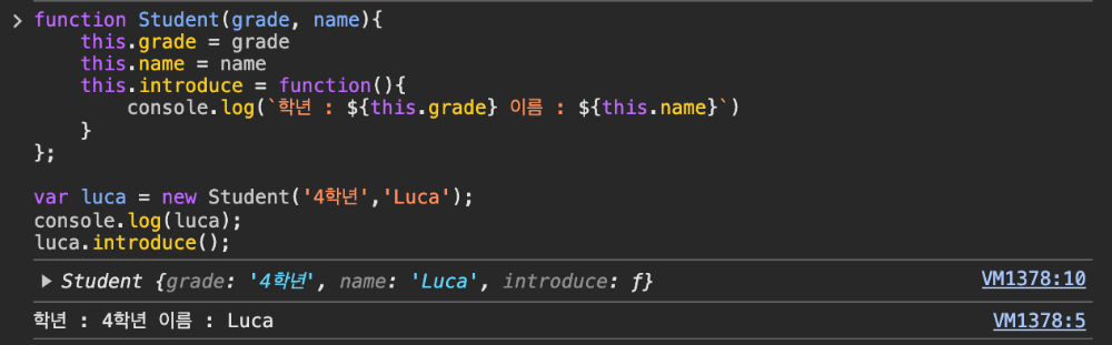 console.log(`학년 : ${this.grade} 이름 : ${this.name}`)