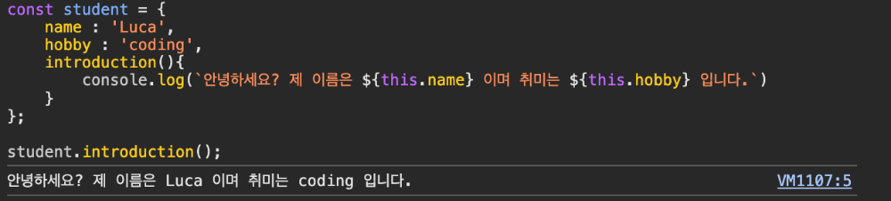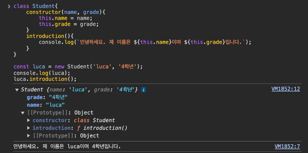 console.log(`안녕하세요. 제 이름은 ${this.name}이며 ${this.grade}입니다.`);