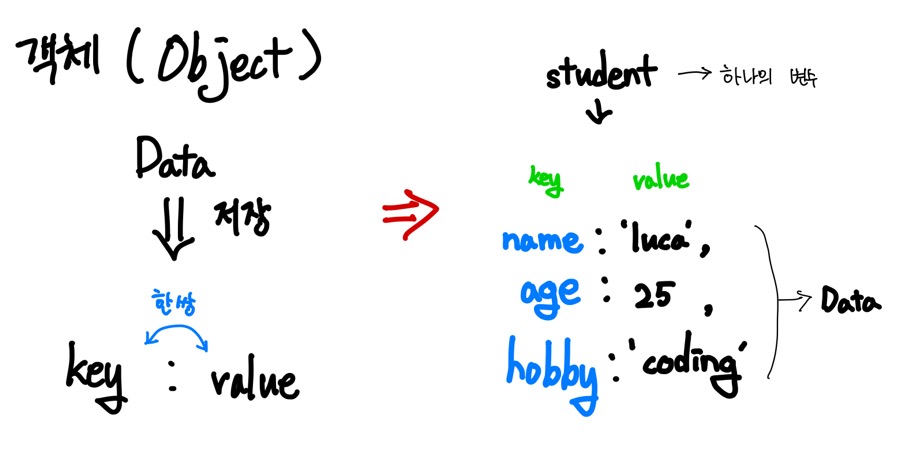 객체는 데이터를 key:value 한 쌍의 구조로 저장하는 방식입니다.