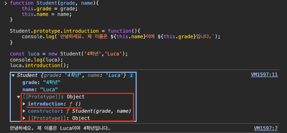 프로토타입의 introduction 메서드를 재사용하게 되는 것이죠!