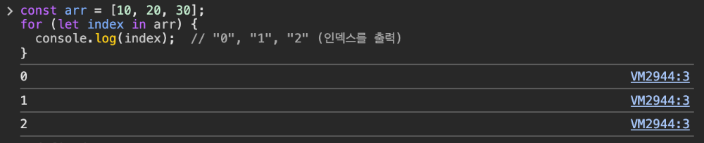 console.log(index); // "0", "1", "2" (인덱스를 출력)