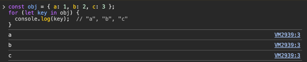 for...in은 열거 가능한 속성(key)을 순회하는 데 사용됩니다.