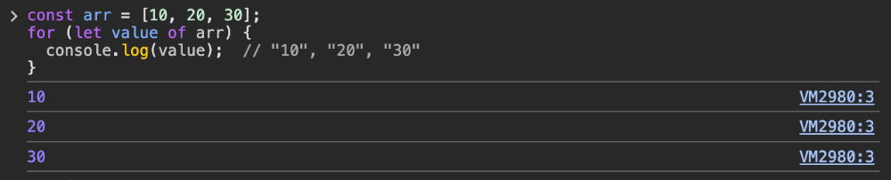 for...in과는 다르게 반복 가능한 객체의 값(value)을 순회합니다!