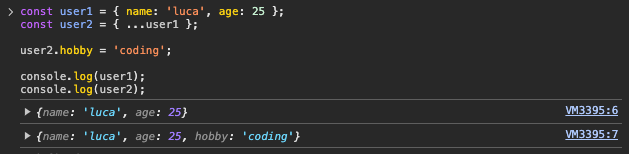 배열의 전개 구문처럼 객체 전개 구문 역시 기존 객체를 복사해 독립적인 새로운 객체를 만들 수 있습니다!